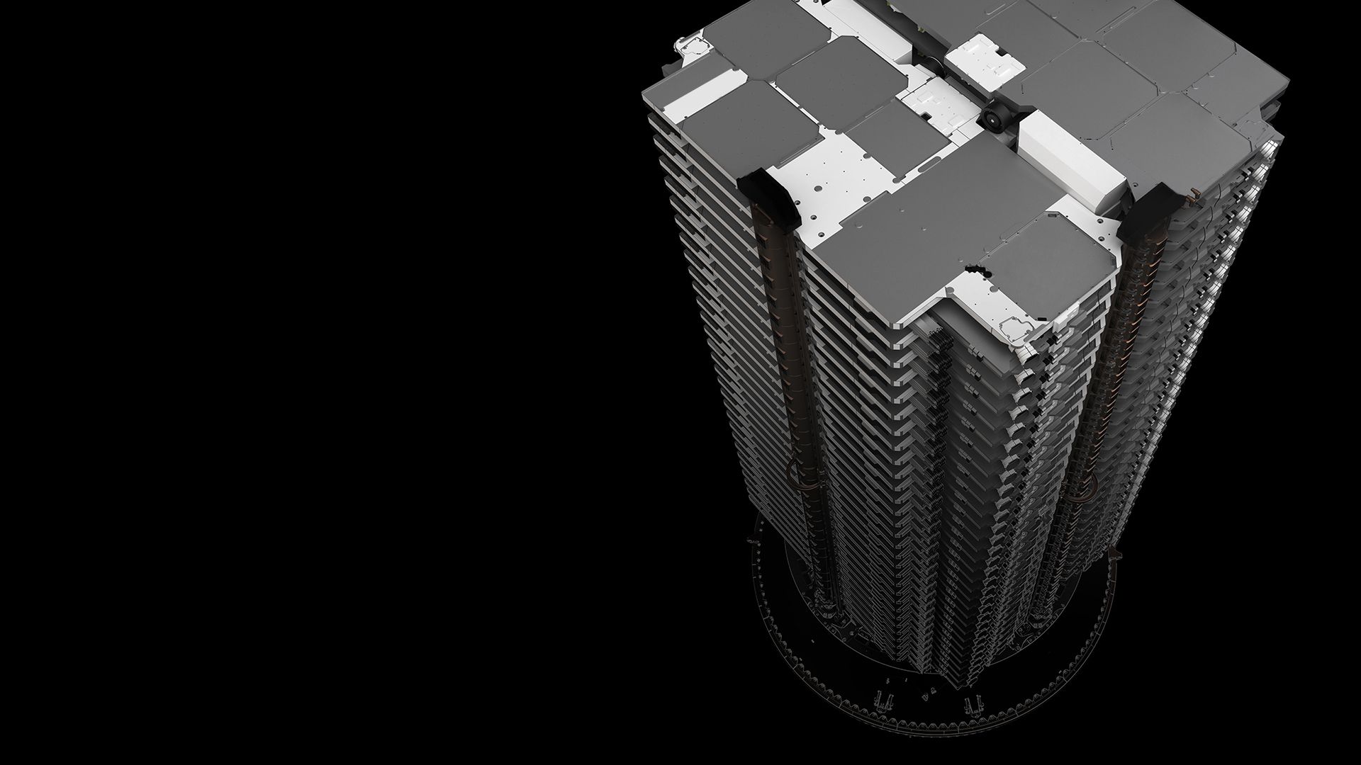 SpaceX uses a unique method of satellite packing and deployments. 60 Starlink satellites are stacked directly on top of each other in two stacks. They are attached to the bottom payload adaptor and four metal rods running the length of the stack hold the satellites in place. With this method, the satellite structure becomes the adapter structure, and no unnecessary mass is needed. Once the metal rods are released, the satellites fan out like a deck of card in space. The 60 satellites disperse into groups of 20 and slowly raise their orbits together.
